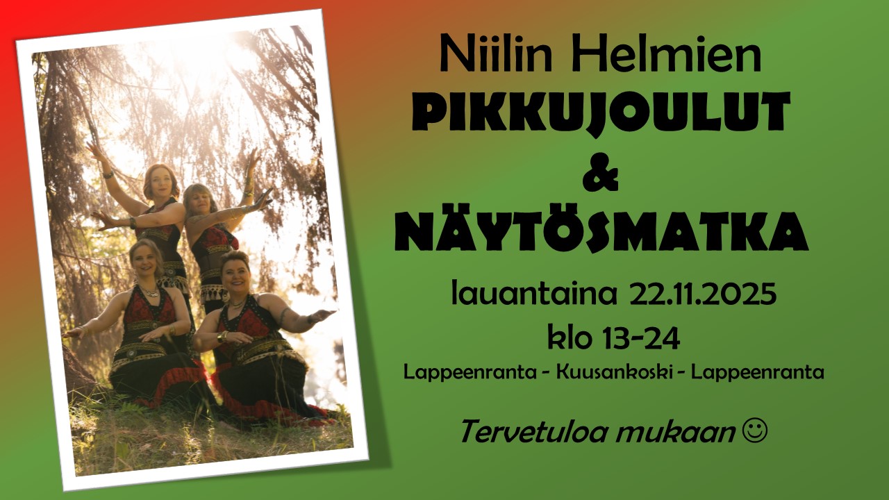 Niilin Helmien perinteinen JOULUTANSSI-ILTA keskiviikkona 4.12.2019 klo 18-20, Hyvä Vire, Kauppakatu 61, Lappeenranta